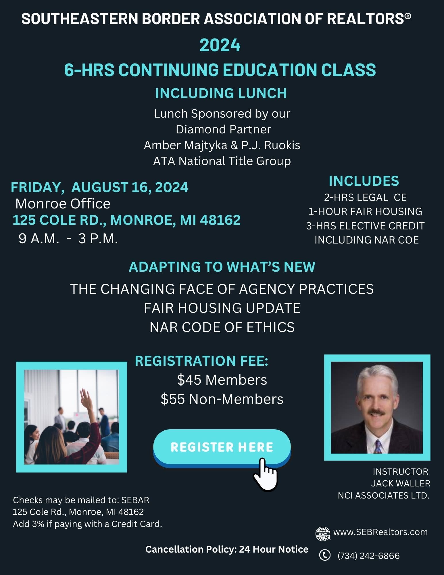No-Show Policy: Cancelations must be made within 24 hours.